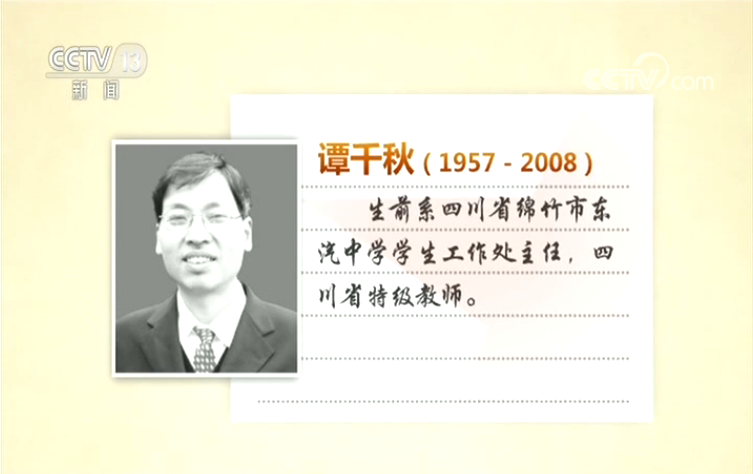 谭千秋,生前系四川省绵竹市东汽中学学生工作处主任,四川省特级教师。
