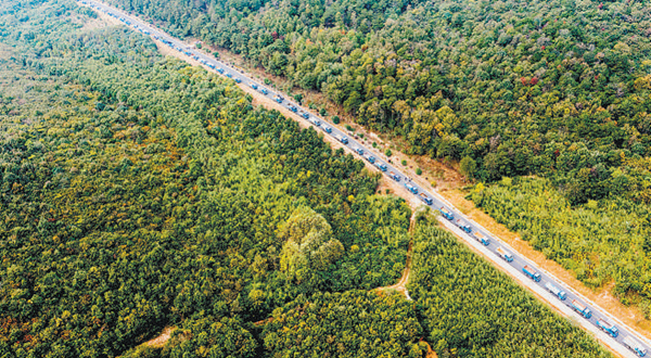 10月14日,安徽省庐江县庐城镇新建成的夹山蕻乡村公路。近年来,庐江县建设农村道路总里程达3962公里,“四好农村路”成为老百姓的产业路、致富路。 左学长摄(中经视觉)