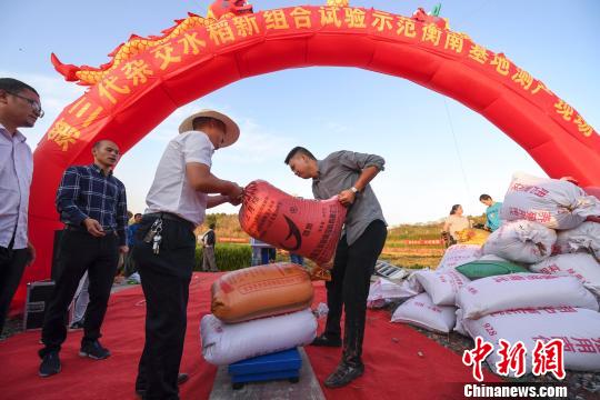 第三代杂交水稻新组合试验示范衡南基地测产。 杨华峰 摄