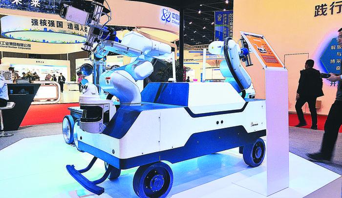 图为2019年太原能源革命展上展示的列车车底检验机器人,它可在节省人工的同时提高检测效率。 本报记者 梁 婧摄