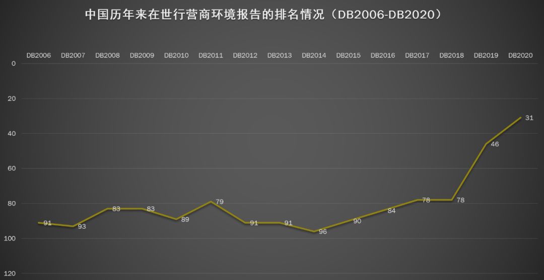 北京时间10月24日,世界银行发布《2020年营商环境报告》。中国的全球营商便利度排名继去年大幅提升32位后,今年又跃升15位,位居全球190个经济体的第31位,连续两年跻身全球优化营商环境改善幅度最大的十大经济体。