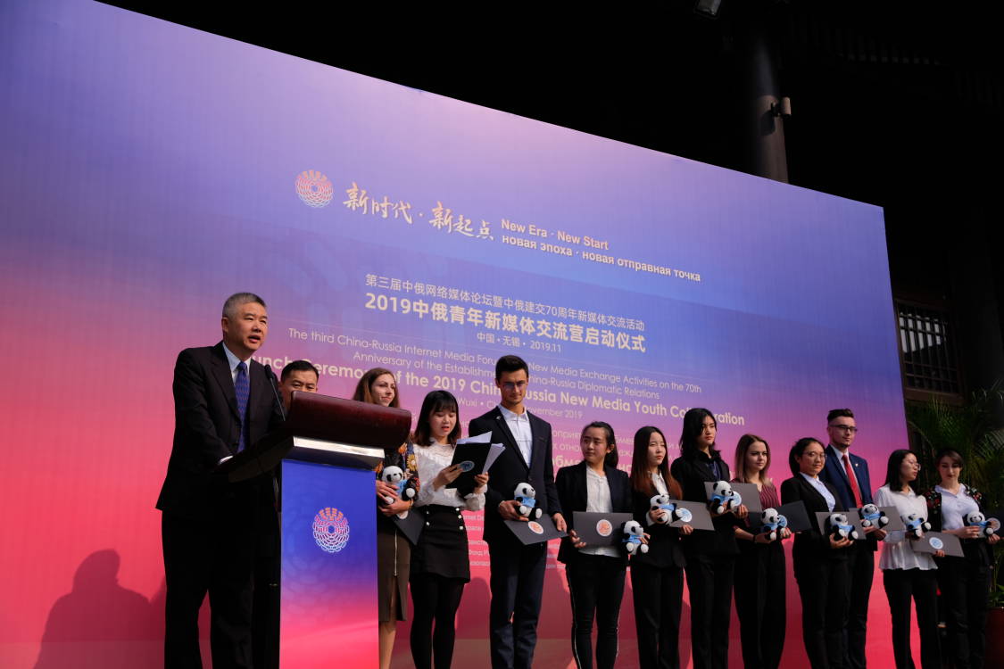 无锡市委宣传部副部长、市委网信办主任蔡文煜致辞表示:本次中俄网络媒体论坛,主题聚焦中俄建交70周年宏阔背景下的网络媒体合作与发展,旨在促进两国人民特别是青年一代对中俄文化认知及人文领域的情感共识,促进中俄友谊薪火相传,可谓意义重大、立意深远。此次2019中俄青年新媒体交流营选择无锡,既因为无锡是一座底蕴深厚、文脉悠远的文化之城,更因为无锡是一座四通八达、朝气蓬勃的开放之城。无锡静待师生朋友通过接下来的采风活动去欣赏、去聆听、去感受,并通过你们的视角向世界展示一个风情雅致、魅力无限的无锡!