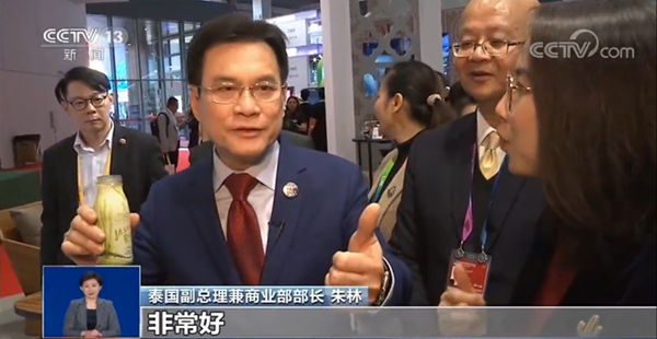 央视网消息:本次进博会共有64个国家参展。泰国作为15个主宾国之一,相比去年,参展规模更大,展品也更加丰富。率团来华的泰国副总理朱林,说他自己在20年前曾成功把泰国的橡胶推销到了中国,这届进博会,他又当上了推销员,在泰国馆亲自推介。