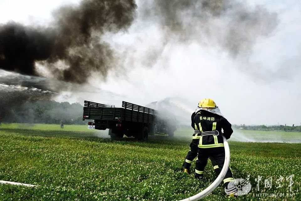 战机发生何种险情,相应地采取何种消防措施,场务连消防班都要做出专业的判断。在模拟训练中,他们针对飞机冲出跑道的特情进行应急处置:开辟安全通道,解救飞行员,流程一气呵成,消防工作直面战场态势。