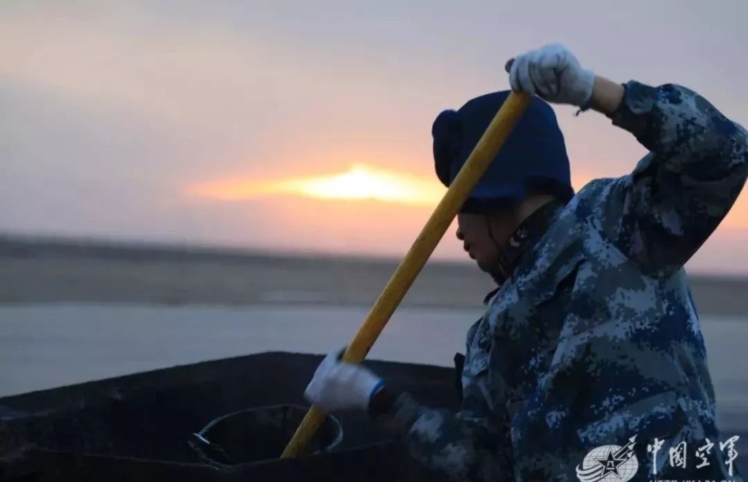 作为机场的维护者,养场班官兵常常为了排除道面故障而挑灯夜战。一颗小石子、一条小裂缝,都可能给飞行训练造成安全隐患,因此,养场班官兵最常见的动作就是俯身面向大地,搜寻、排查、修补……
