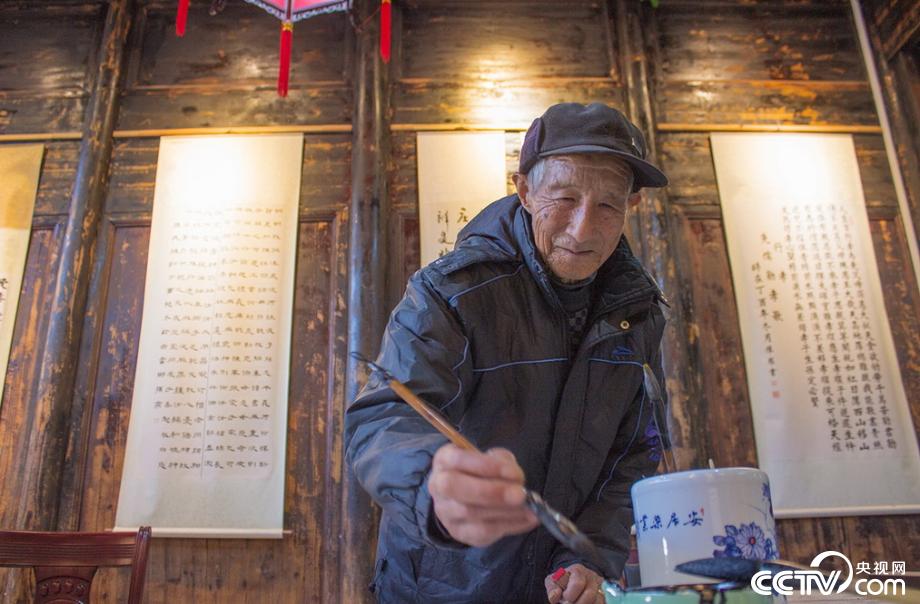围绕“书画之乡”“古戏台”“农家民宿”等内容,三坪村不断丰富乡村旅游形态,2015年三坪村荣获中国乡村旅游模范村,今年8月三坪村被列入首批全国乡村旅游重点村名录。图为写书法的三坪村老人。