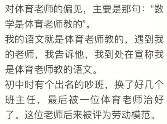 但是也有一些家长表示,体育老师课业压力小,就能有更多时间和精力放在孩子们身上,而且还会更有耐心,不是坏事。