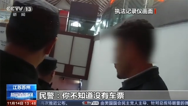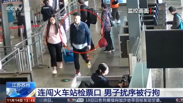 央视新闻客户端11月14日消息,近日,一未购买到火车票的男子为乘火车出行,在苏州火车站多次强行闯检票口,并与安检员发生冲突。