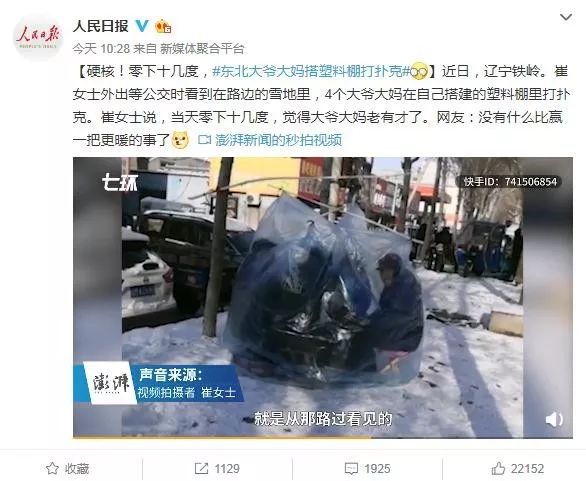 大爷大妈喜欢打牌可以理解,但是这种零下十几度的环境下,尽量不要待太长时间,容易感冒。