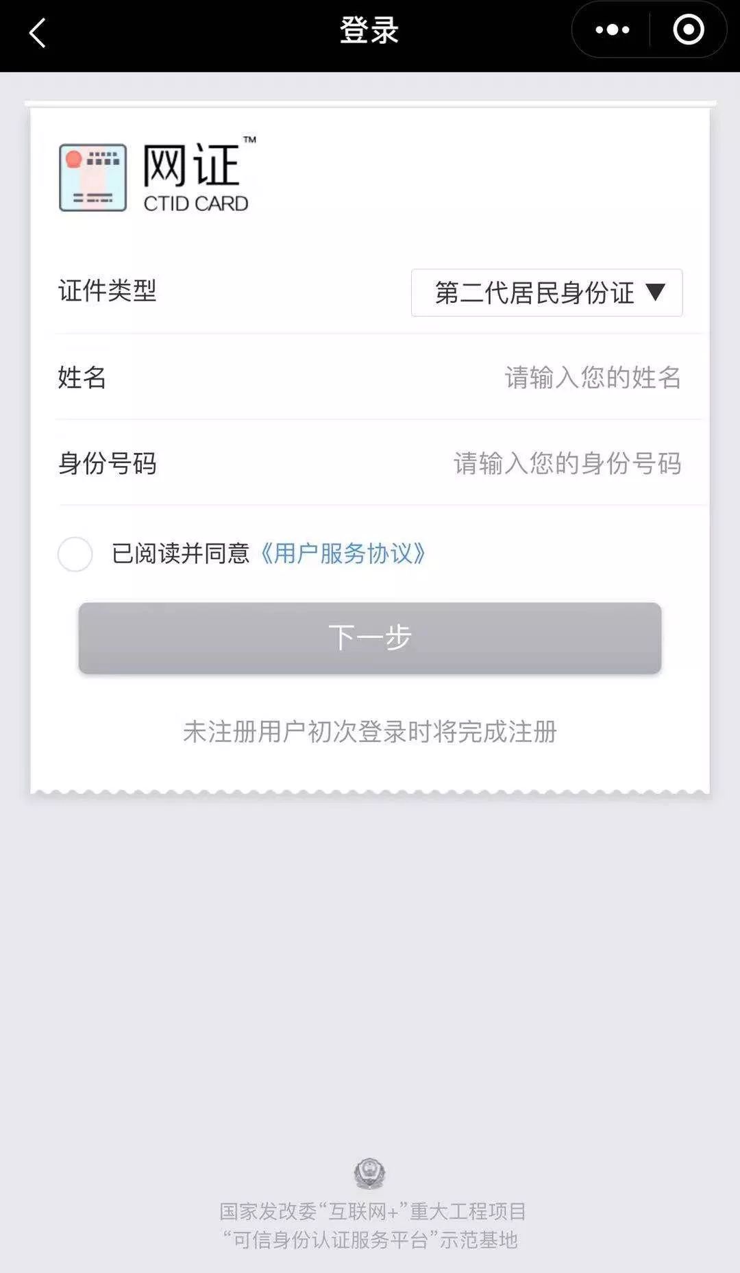 3、初次使用需要输入身份证信息,随后完成面部扫描认证后就可以使用。