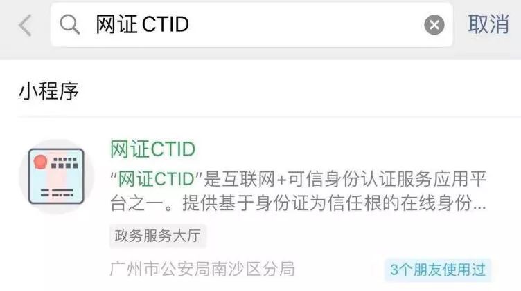 1、微信搜索“网证CTID”或者“网证”,出现的结果中有“网证CTID”小程序。