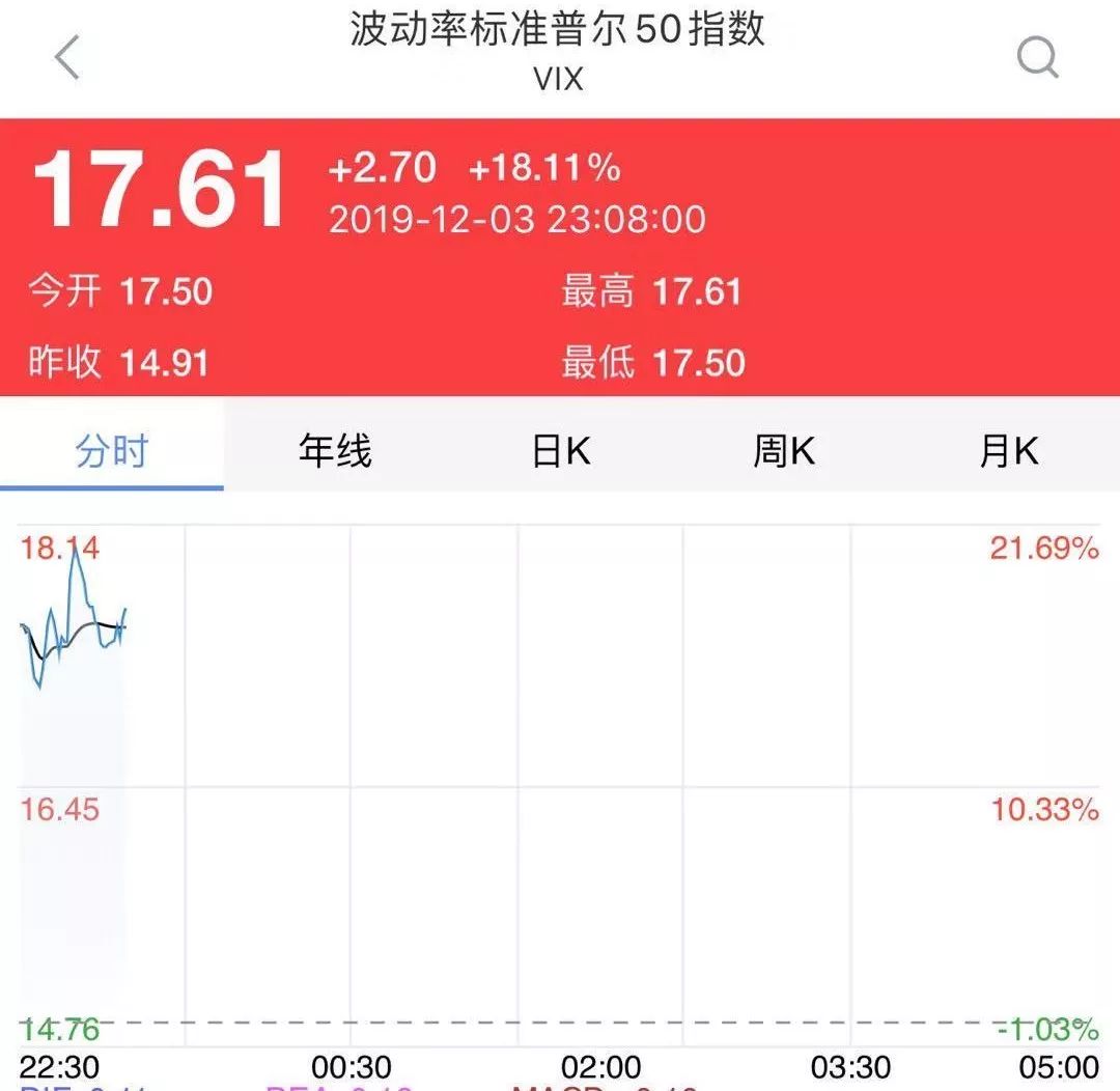 同时,衡量市场恐慌程度的CBOE波动率指数(VIX)创7周新高,一度暴涨逾近20%。