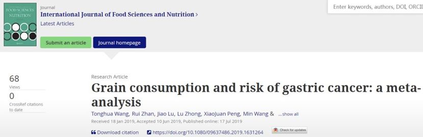 日前,一项发表在《国际食品科学与营养》杂志上的研究表明,平时全谷物摄取量多者,可降低四成胃癌风险。
