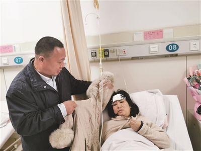 苏老师外套帽子上以及内侧,血迹已干。在医院病房,苏敏的丈夫戴从荣看着躺在病床上的妻子甚是心疼。戴从荣用手撩开妻子的长发,扬子晚报记者注意到,里面仍有已干的血渍,身上毛衣胸口部位的血迹颜色已变暗。事发很突然,就在一瞬间,今年42岁的苏敏告诉扬子晚报记者,作为一年级班主任的她,每天放学时她要将学生护送到指定地点。