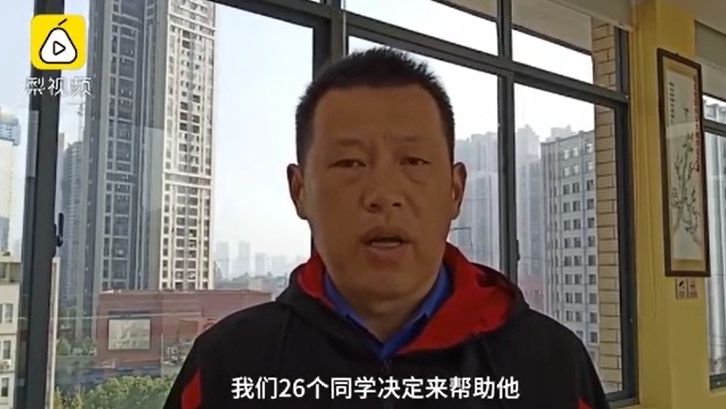 “这张照片,是我们去看他的时候拍的。”杨健翻出手机里的一张合照,照片中的蒋忠,身形有些瘦弱,被同学簇拥在中间,蒋忠的手中还拿着同学的捐款。