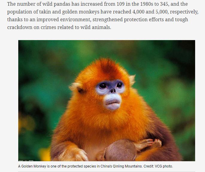 “数十年来,我们在生态和环境保护方面的努力工作为山区野生动植物创造了良好的生存环境。” 报道援引陕西省林业部门的一位负责人的话说。