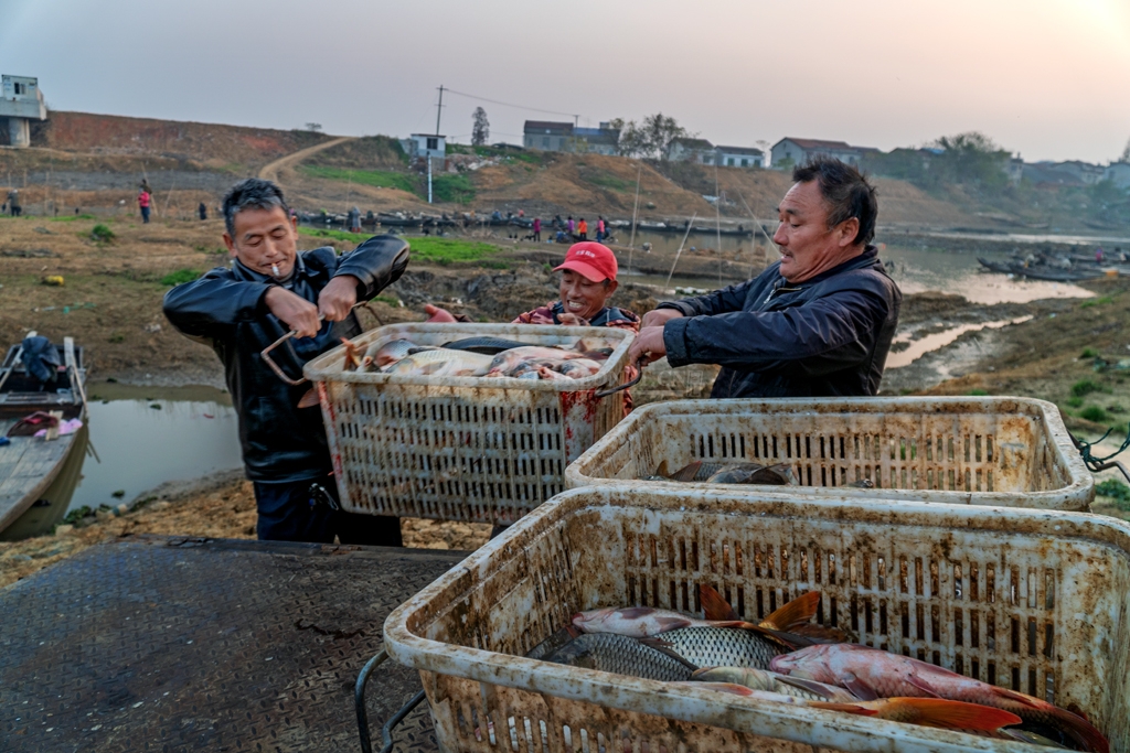 最近在湖南岳阳临湘黄盖湖横波堤养殖公司拍摄了一次鸬鹚捕鱼,尽管已是枯水季节,渔民们依然收获不小。(图/杨海波)