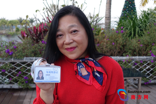 澳门籍导游向记者展示“横琴新区专用导游证”。吴诗航摄