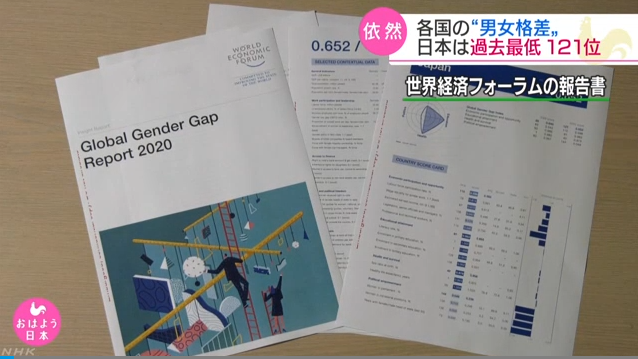 据日本NHK电视台报道,以研究和探讨世界经济领域存在的问题、促进国际经济合作与交流为宗旨的达沃斯论坛主办的世界经济论坛,每年都会从政治、经济、教育、健康四个领域来调查世界各国的男女平等情况。