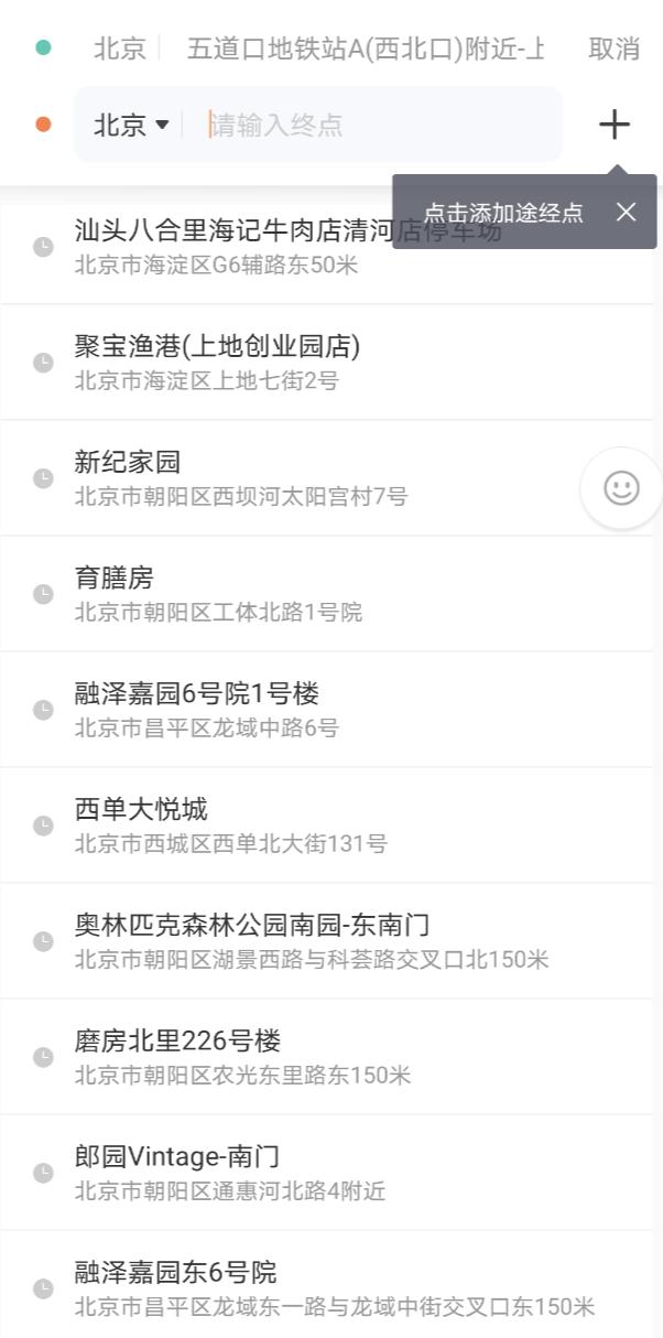 乘客通过右侧“+”符号添加“途经点”
