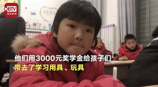 后来他们了解到,现在农村的孩子们常年没有爸妈陪伴,跟爷爷奶奶生活在一起,思念几乎陪伴他们的童年。于是他们决定用奖学金送一份特别的礼物给这些孩子。