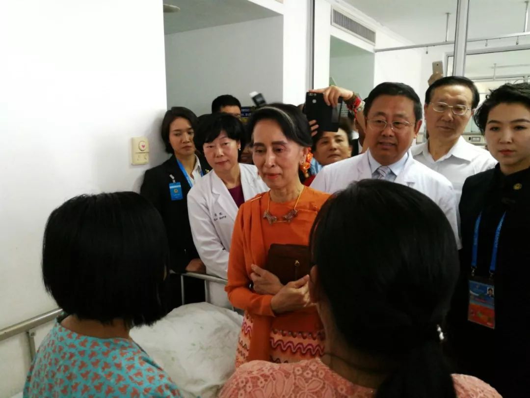 ▲2017年5月16日,缅甸国务资政昂山素季来到北京安贞医院看望受救助在京做手术的缅甸先心病患儿。她在北京出席首届“一带一路”国际合作高峰论坛。新华社记者 李雪笛 摄