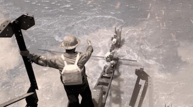 最大的险情发生在1964年。秋汛洪水来了!两个桥墩悬浮沉井的锚绳先后崩断,沉井开始剧烈晃动。一个面积接近篮球场、足有7层楼高的庞然大物,在激流中揺来晃去,最大幅度达到60米!大桥桥址随时可能报废,工地上每个人的心都提到了嗓子眼。