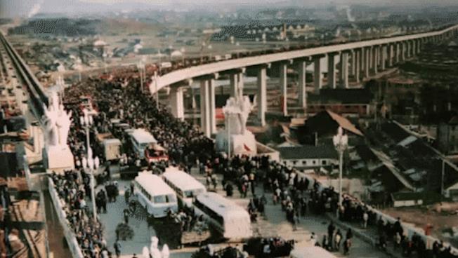 1968年,大桥竣工。通车典礼上,数十万南京市民涌向桥头庆祝。桥上、桥下,甚至树上都挤满了人。人们欢呼雀跃,热泪长流。典礼后,挤掉的鞋子就装满了两卡车!