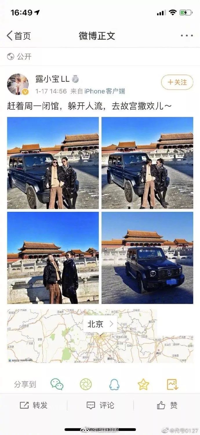 不过不是因为这天是北方的小年,而是因为有人在故宫博物院本应闭馆的周一,开车进入了故宫,还在微博上晒出了照片。