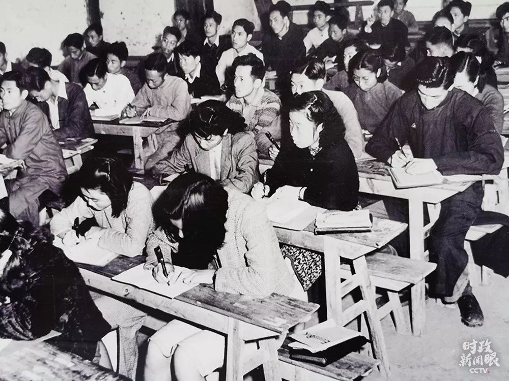 △西南联大学生在上课。从照片上看,这间教室更为简陋。(来源于西南联大博物馆)