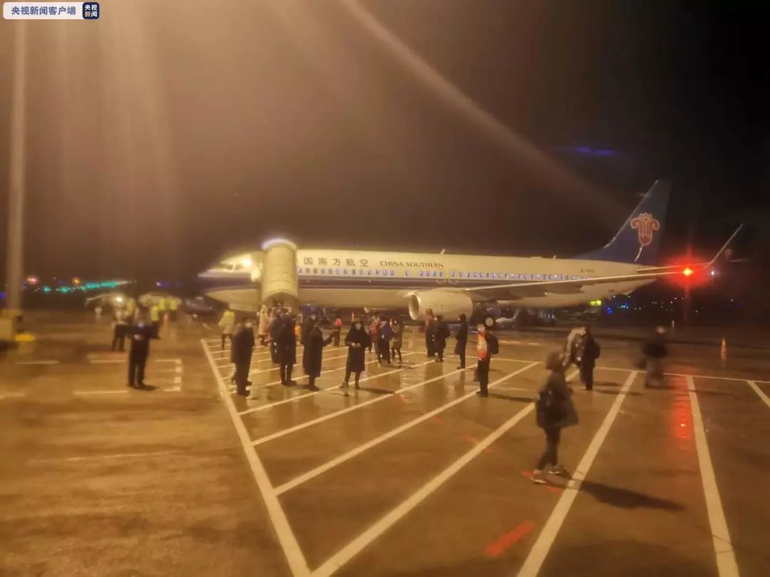 △广东驰援武汉医疗队乘坐的客机抵达武汉机场
