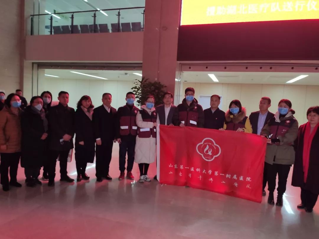 18:30,山东第一医科大学第一附属医院全体援助湖北医疗队成员在医院集结。