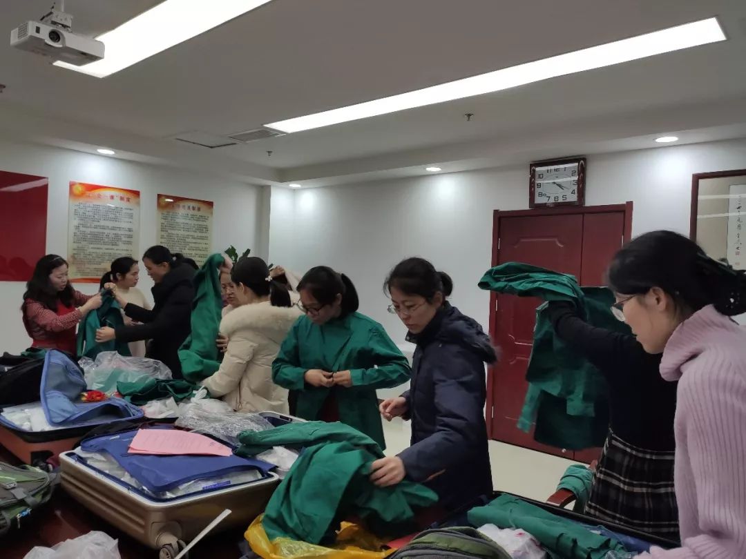 山东省立三院援助武汉抗击新型冠状病毒感染肺炎医疗队成员现场准备物品并进行最后演练。