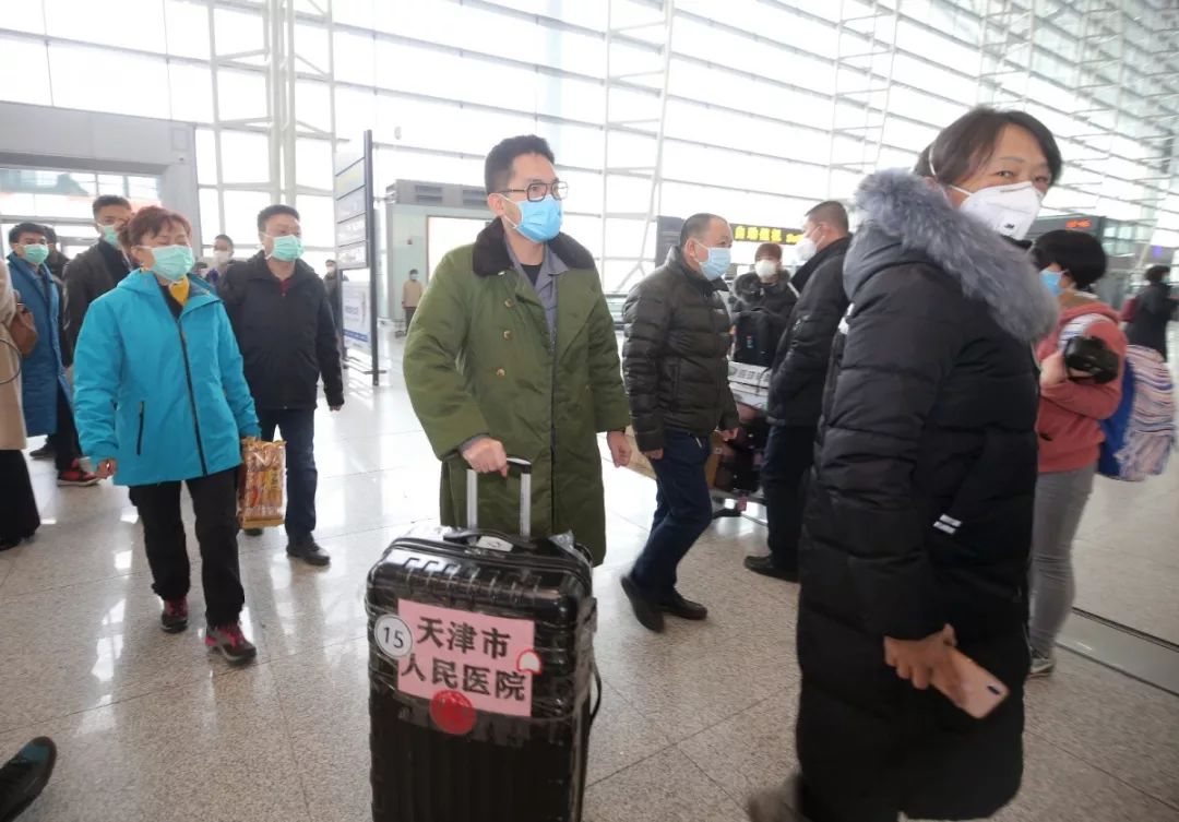 本次出发138人(含3名领队),他们分别来自天津市第一中心医院、市人民医院、市第三中心医院、市第四中心医院、第二人民医院、天津医科大学总医院、天津医科大学第二医院、天津医科大学肿瘤医院、市胸科医院、市环湖医院、天津医院、市中西医结合医院、天津中医药大学第一附属医院、天津市北辰医院等单位。检验组和护理后备组70名医护人员作为后备力量,整装待发。