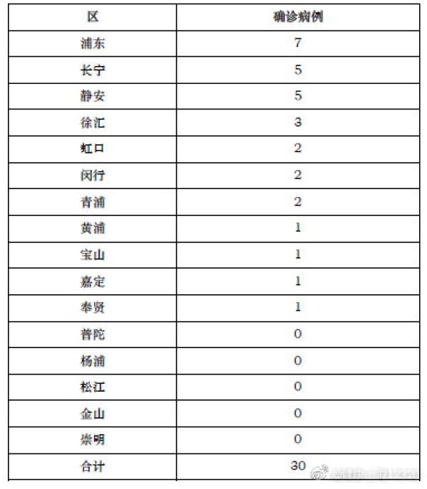 累计确诊病例中,20例有湖北居住史、21例有湖北旅行史、12例有相关确诊病例接触史;外地来沪人员23例,本地常住人口30例,按常住人口居住地各区分布情况如下: