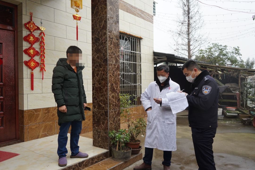 在走访过程中,蒋佳需要对每个人进行防护说明,要求尽量在家,并测试体温,然后为一些有异常情或者有需求的村民,联系医院的医护人员上门检查。