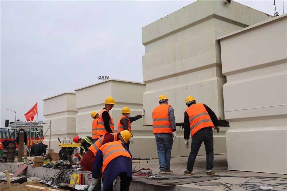 武汉火神山医院污水处理厂已建成,武汉市生态环境局人员在火神山医院现场协调督导在线监测站房及设备建设事宜。