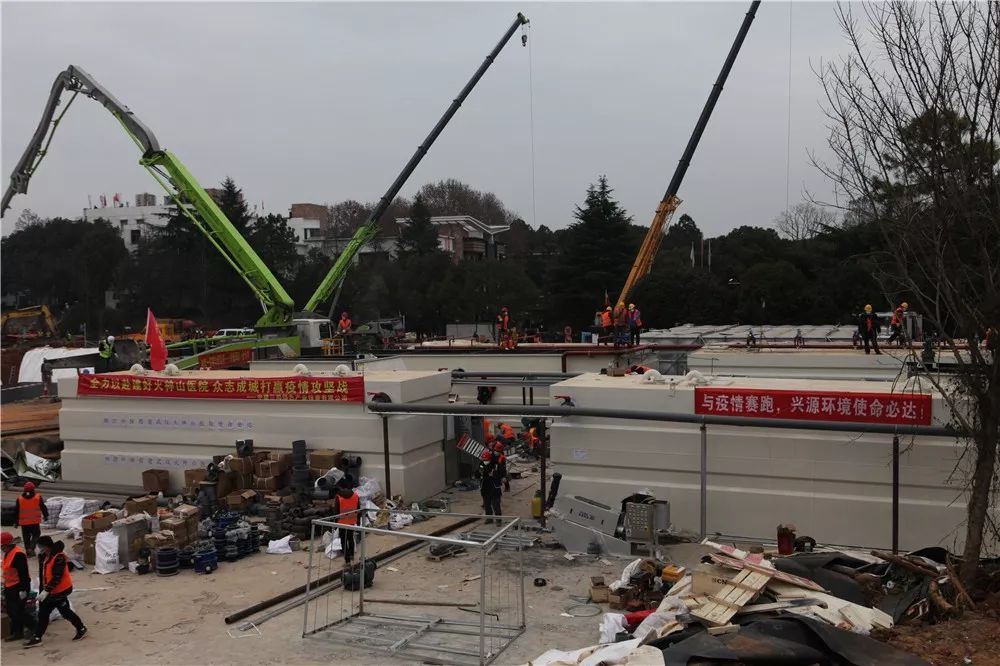 据悉,雷神山医院医疗废水处理设施设备均已进场,下一步将提升泵站、化粪池及接触消毒池安装到位,预计2月5日交付。