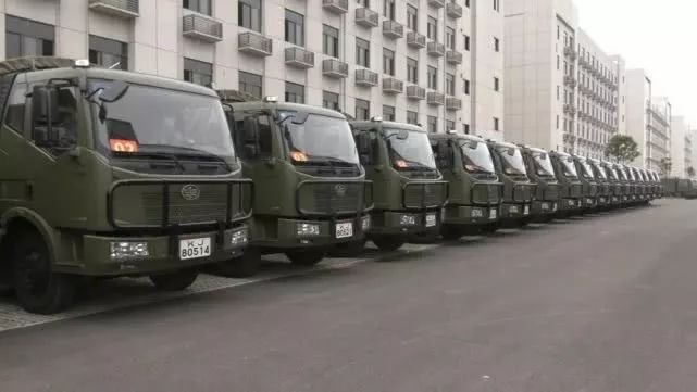 运力支援队共130辆军用卡车、260多名官兵