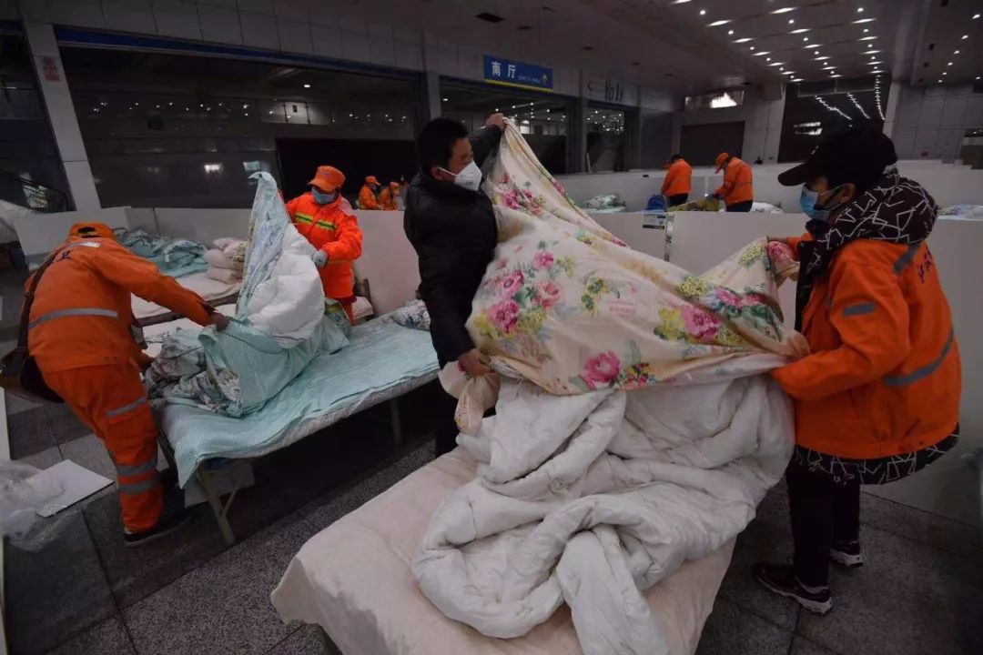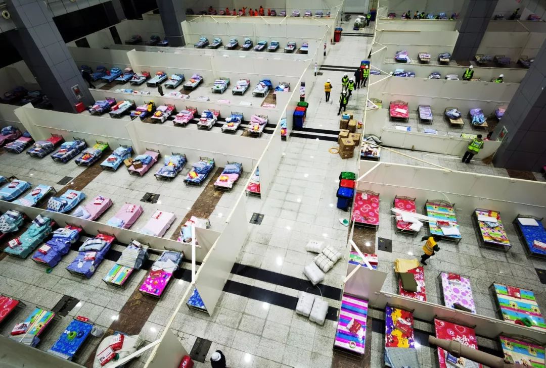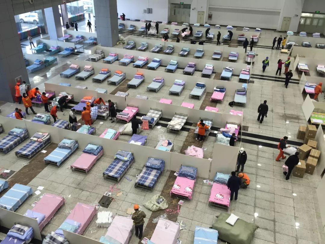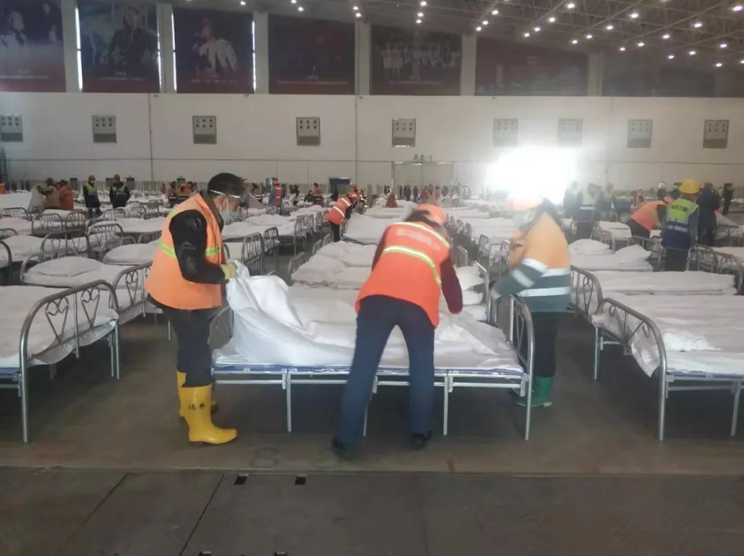 2月3日晚,武汉市连夜建了三所“方舱医院”,分别是洪山体育馆(800张床位)、武汉客厅(2000张床位)、武汉国际会展中心(1000张床位),专门收治轻症患者。