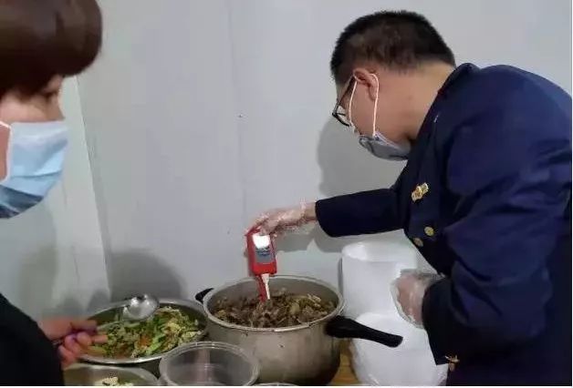 执法人员进一步了解到,该厨房为一私人居家厨房,无法达到正常餐饮配送点要求。灌口市场监管所党支部认识到,保障口罩生产企业员工正常就餐就是保障疫情防控物资生产,就是保障防控工作落到实处,决定在这个“非常时期”,采取“非常手段”,组织执法人员第一时间上门展开指导,从食品采购管理、加工制作过程、餐饮具消毒、每日餐食供应种类等方面,全面规范该厨房的食品安全各项指标。与此同时,执法人员还每日定时上门对餐食进行食材农残、中心温度、亚硝酸盐等快速检测,规范其采用分餐制,在厨房现有特殊情况下尽全力把控餐厨安全条件,特事特办,为企业员工就餐保驾护航。
