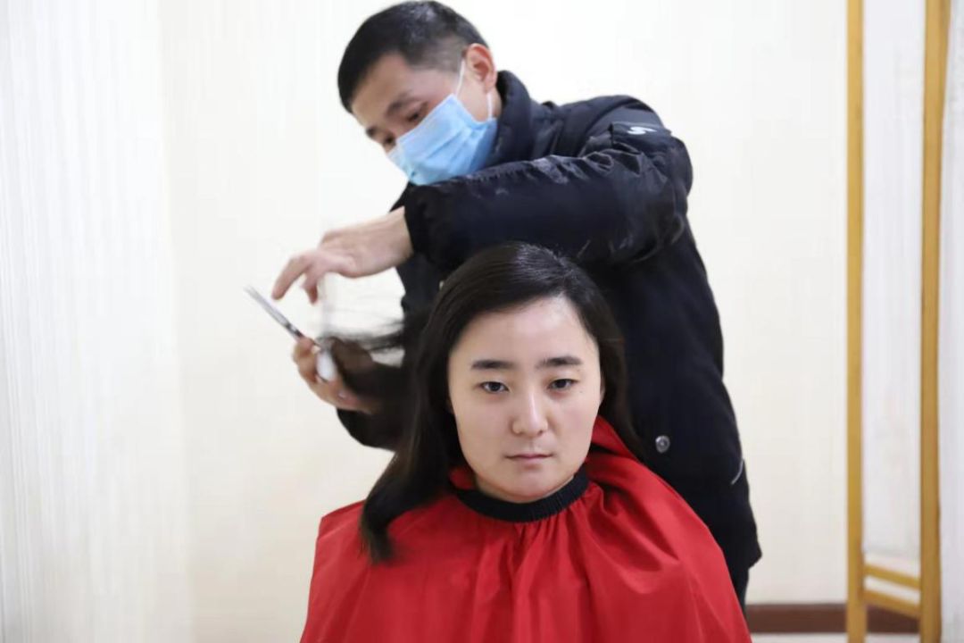 “我以前的头发快到腰了,来的时候下狠心剪了。今天听专家一讲,想再剪短一些。”刚开始剪的时候,护士欧阳秋菱还有说有笑,可随着头发一绺绺落地,她开始沉默了。
