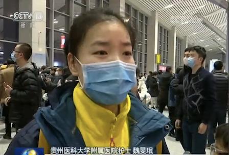 贵州医科大学附属医院护士 魏旻珉:习近平总书记指出,医务工作者一定要发挥火线上的中流砥柱作用,全力以赴救治患者,给我们医务人员更多的使命感、责任感,我们一定会完成任务。