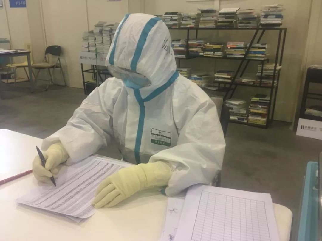 经过六个小时奋斗,我们AB厅接收了218个病人。方舱里的病人大多客气,听从安排。极少数用我们不懂的语言着急的需要医生护士的帮助。看到他们,我才觉得生活是多么不容易,以前的简单日子是多么幸福。整个工作过程中,防护服里热了冷,冷了又热,一层一层的汗把里面的衣服都湿了一遍,耳朵上被口罩勒的像刀割一样疼痛,可是当病人有需要的时候,我们又义无反顾的,忘记了这些不适,一旦为他们服务起来,责任与使命驱使我们前进。