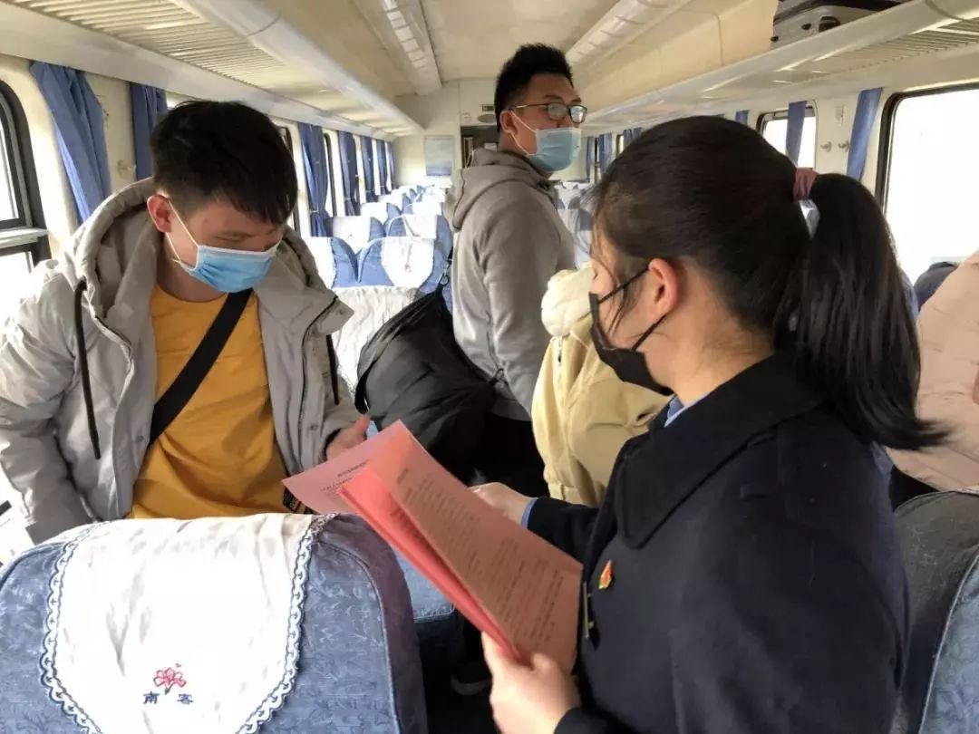 听到他们的不解和疑惑,潘磊便向他们介绍了疫情期间乘坐火车的注意事项,还特意送给他们一张新冠肺炎防控知识宣传册。对于他们有疑问的地方,潘磊就用东北“家常嗑儿”给他们解释。