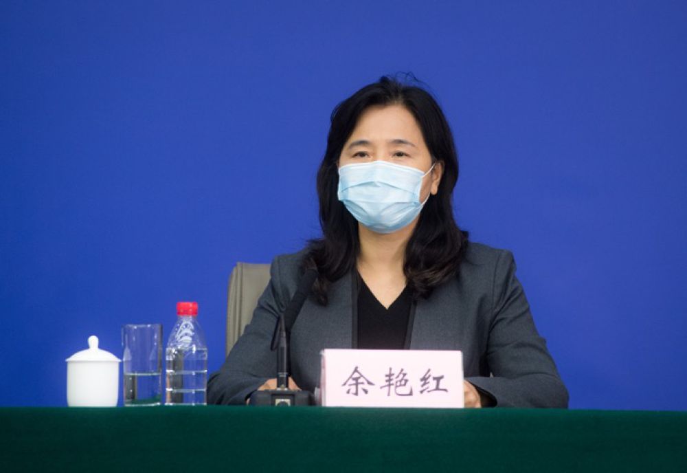 ↑中央指导组成员、国家中医药管理局副局长余艳红回答记者提问。新华社记者肖艺九摄