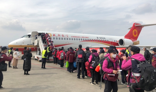2月18日-21日,民航局组织协调第八批包机紧急运输医疗队,共组织78架包机运输全国各地近8000名医护人员和部分医疗物资驰援湖北各地。其中,成都航空连续派出4架国产ARJ21支线客机执飞成都—武汉的四川省医疗支援队包机,并由民航西南地区管理局党委书记刘军、民航四川监管局副局长孙文胜等执飞,这也是国产客机首次助力抗击疫情的包机任务。