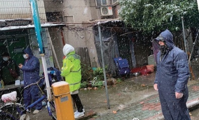 风雪。小区那扇锈迹斑斑的旧铁门被关了好几天,天天守在门口的正是“第四支部”的那些人,居民不可以随意进出,出入都得被他们问、接受一个白色的“枪”顶头,而其中大多数都被他们苦口婆心地劝回了。更别提我了,我想进去翻垃圾桶都溜不进去,这让我有点恼火。今天突然雨雪交加、气温骤降,我有点幸灾乐祸,看你们能坚持多久?可他们非但没走,一身雨一身雪地顶在那儿,还提醒小区里的居民注意保暖。得了吧,你们自己都冷得跺脚,还管别人呢!我都受不了了,赶紧去找个暖和的地方躲着了。