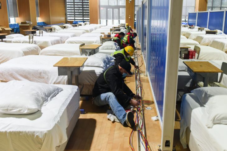 2月3日晚,武汉市连夜决定在洪山体育馆、武汉客厅、武汉国际会展中心建设首批3家方舱医院。2月5日,国务院国资委要求有关建筑企业要主动承接各地专门医院建设和改造项目,支持地方提高收治能力。