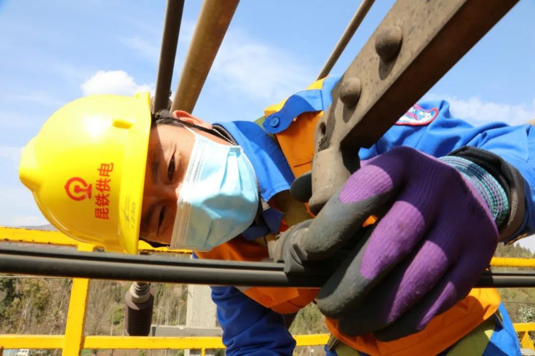 为确保供电安全、列车运行畅通无阻,昆明供电段精心组织进行沪昆铁路接触网大修施工,对管内供电设备进行全面排查整治。为顺利推进大修工作,该段抽调12名精兵强将,成立“防疫保安全突击队”,由2018年度“最美铁路人”代云华担任突击队队长。他全过程参与大修施工,坚决确保供电安全万无一失。
